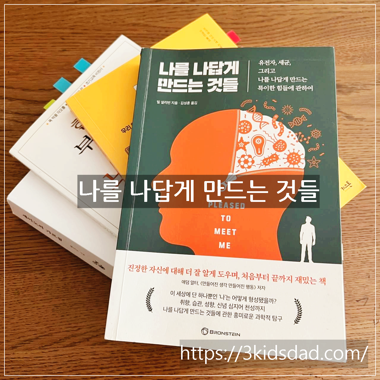 제가 흥미를 갖고 있는 주제라서 그런지 글이 길게 작성 되어졌습니다. 혹시라도 관심 있으신 분들은 읽어보시면 좋을 것 같아요. 이 책을 리뷰하는 이유는 저와 비슷한 상황에 있는 분들에게 도움이 될 것으로 생각합니다. 첫 번째로, 이 책에서 가장 인상 깊었던 내용은 유전과 생물학적 특성이 어떻게 우리의 행동과 성격에 영향을 미치는지에 대한 설명이었습니다. 저희 집 아이 셋은 초등학생 남자아이 2명과 유치원 여자아이 1명인데, 아이들의 취향이나 행동이 뚜렷하게 다른 것을 볼 수 있습니다. 이 부분을 이해하는 것이 중요하다고 생각합니다. 두 번째로, 편식에 대한 이야기가 나와서 흥미로웠습니다. 아이들이 자라면서 누구나 편식이 있다는 것을 경험해 봤겠죠? 이 책에서는 아이들이 왜 특정 음식을 좋아하거나 싫어하는지에 대한 과학적 근거를 설명하며, 이러한 차이가 자연스럽게 발생하는 것임을 알게 되었습니다. 이를 통해 아이들의 식습관에 영향을 주는 부분을 조금은 이해하였습니다. 세 번째로, 우리 몸의 미생물이 심리에 어떻게 영향을 미치는지에 대한 탐구였습니다. 예를 들어, 혀에 있는 세포에 따라 좌우되는 아이들의 식습관 행동이 어떻게 관련이 있는지를 설명하고 있습니다. 이 지식을 바탕으로 아이들을 더 이해하려고 노력하고 있습니다. 결론적으로, 이 책의 주요 메시지는 아이들의 유전적 요인과 생물학적 배경을 이해하고, 이를 바탕으로 아이들이 매일 성장하는 과정을 지원하고 도와주는 것입니다. 이를 통해 아이들 개인 차이를 존중하며 부모로서 최선을 다해 줄 수 있도록 노력해보려고 합니다. 이 책을 아직 읽지 않으셨다면, 꼭 한번 읽어보시길 권해드리고 싶어요. 지금까지 나를 나답게 만드는 것들이었습니다!